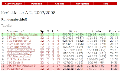 Tischtennis: Ergebnis Hinrunde 2008/2009